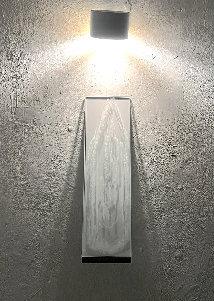 laser etching on laminated glass with steel shelf, 10 x 35cm