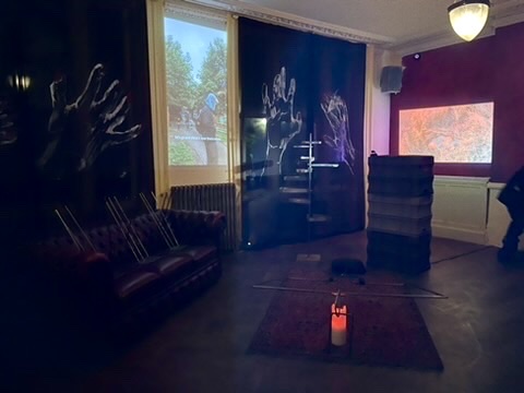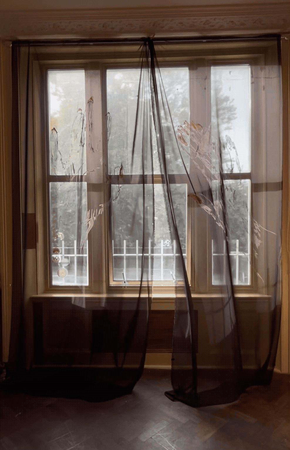 oil stick on chiffon, 150 x 300cm (4x), film photos by